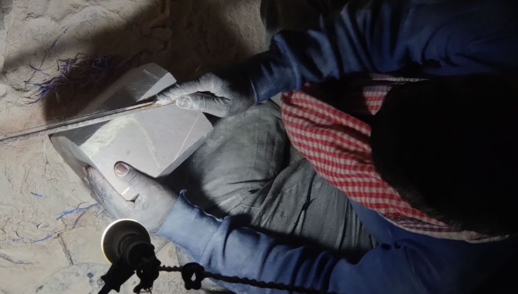 Once the right stone is selected, the real work begins — though it looks, at this stage, more like controlled destruction than creation.