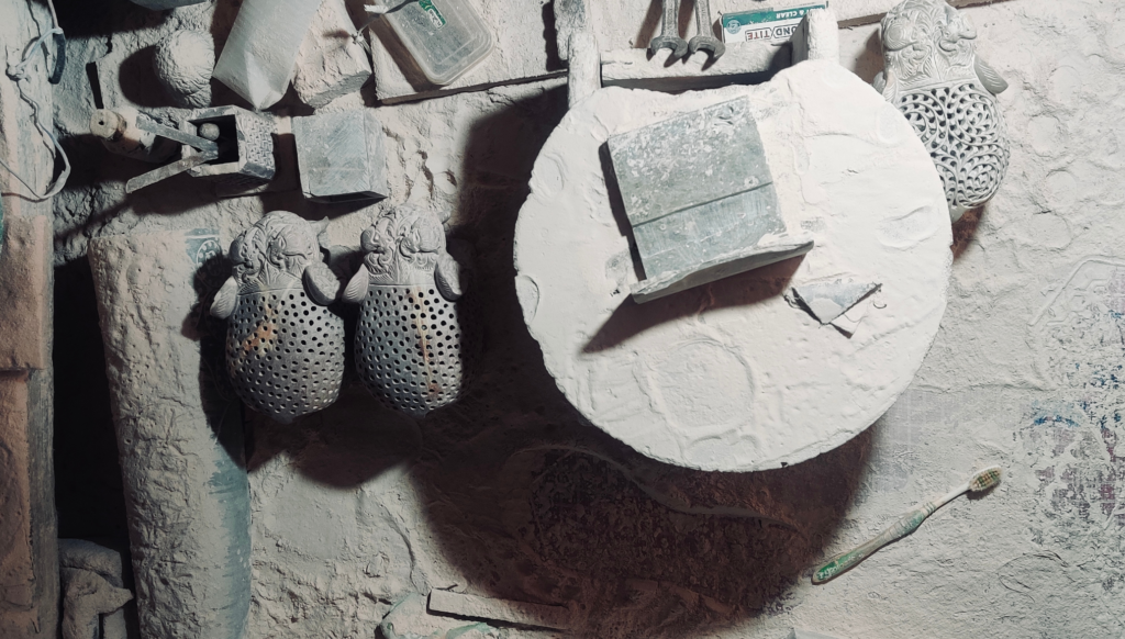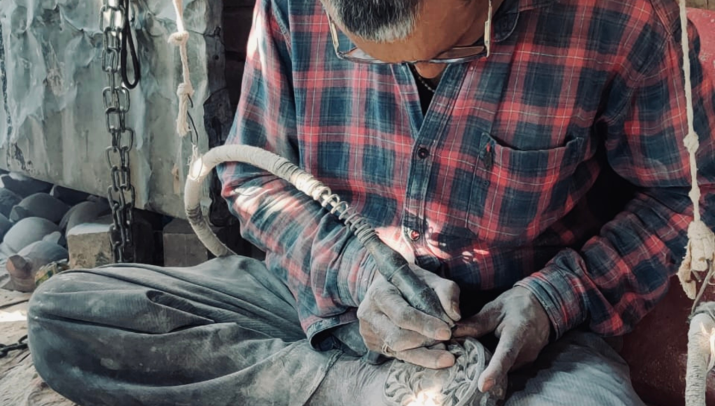 He does not reach for his tools. He does not sketch a design. He holds the raw piece of gorara — soft soapstone sourced from the mines of Chunar — and he studies it. He feels its weight, reads its grain, notices where the light falls differently on its surface. Only when the stone has told him what it wants to become does he finally pick up his chisel.